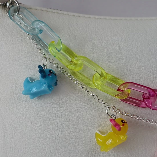 Add a playful pop to your everyday carry with this vibrant axolotl purse chain. Crafted from cheerful acrylic links in eye-catching colors, it pairs perfectly with any bag for instant personality. The sturdy silver hardware ensures durability while keeping that fun, whimsical aesthetic. Whether you're a axolotl enthusiast or simply love bold accessories, this chain transforms your purse into a conversation starter. Lightweight yet reliable, it's the perfect way to express your unique style.